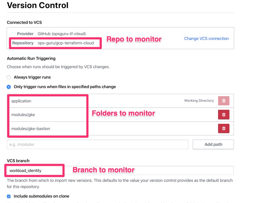 If you want to see a full example of Terraform Cloud code you can check out our tutorial on GitHub: https://github.com/ops-guru/gcp-terraform-cloud. The tutorial will:
