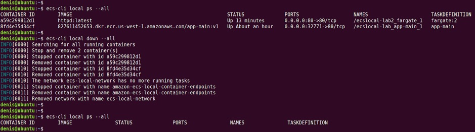 Once I have my local troubleshooting of ECS, I can stop all running containers and delete local network quite easily by another ecs-cli local command: