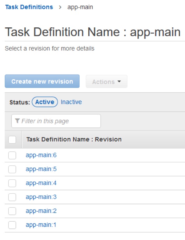 $(aws ecr get-login --no-include-email --region us-west-1)Before local execution of ECS takes place, I need to define the run-time parameters for the containers, such as the memory and CPU requirements and the ports opened. This is done in the ECS task definition. While the task definitions need to be created on AWS initially, I can download the task definition as JSON file to my local machine or use remote task definitions for local testing. For my test application (app-main), I have already created several versions of a task definition on ECS.