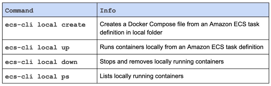 We have seen that ecs-cli local is a useful wrapper for Docker and Docker Compose, which you can leverage to quickly and efficiently test your ECS Task Definition configurations locally without actually deploying your task to a remote ECS Cluster.